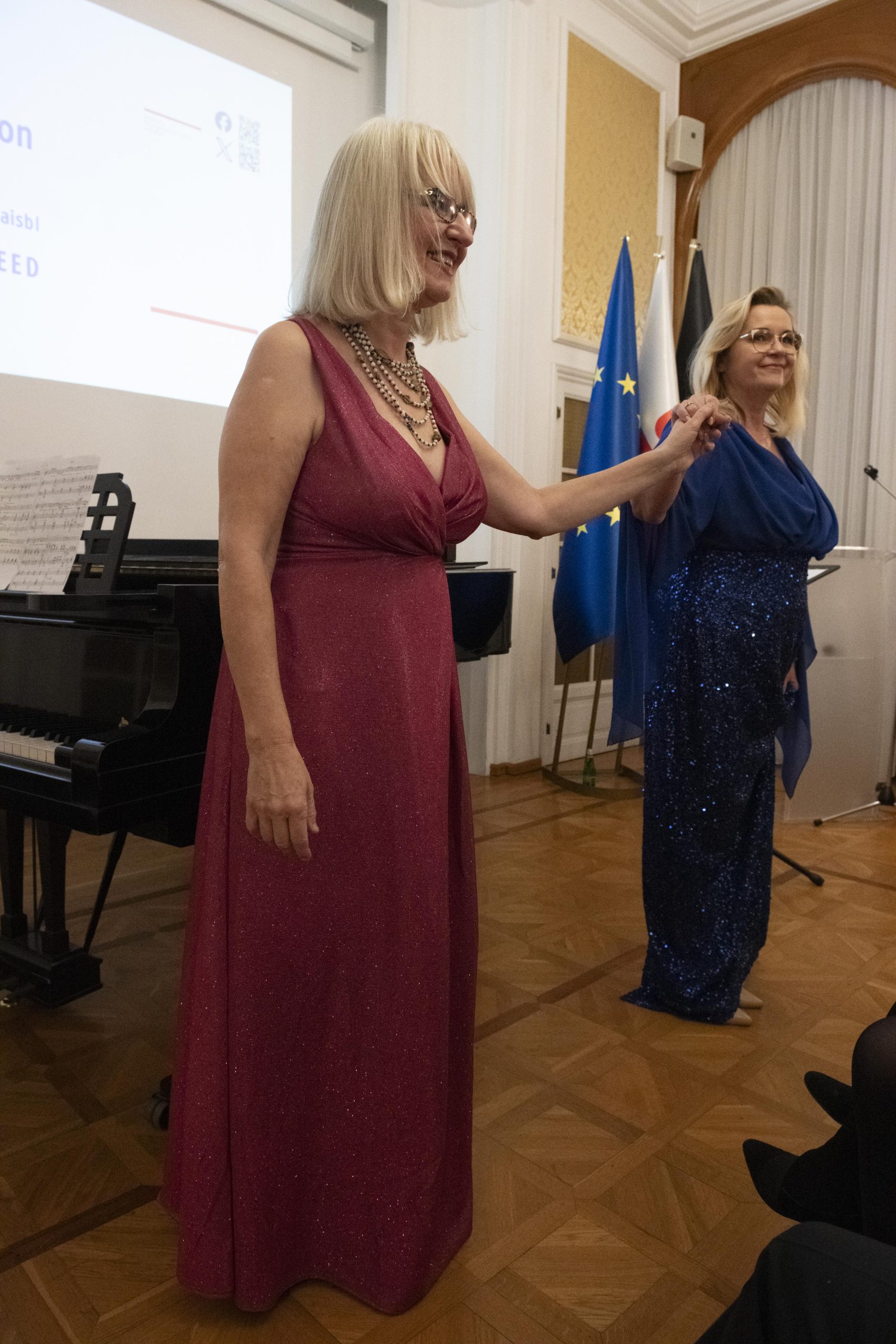 Pokoncertowe przyjęcie dało możliwość rozmowy z obiema artystkami i przybliżenia Stowarzyszenia Femmes d’Europe, które działa na rzecz kobiet i dzieci znajdujących się w trudnej sytuacji życiowej.