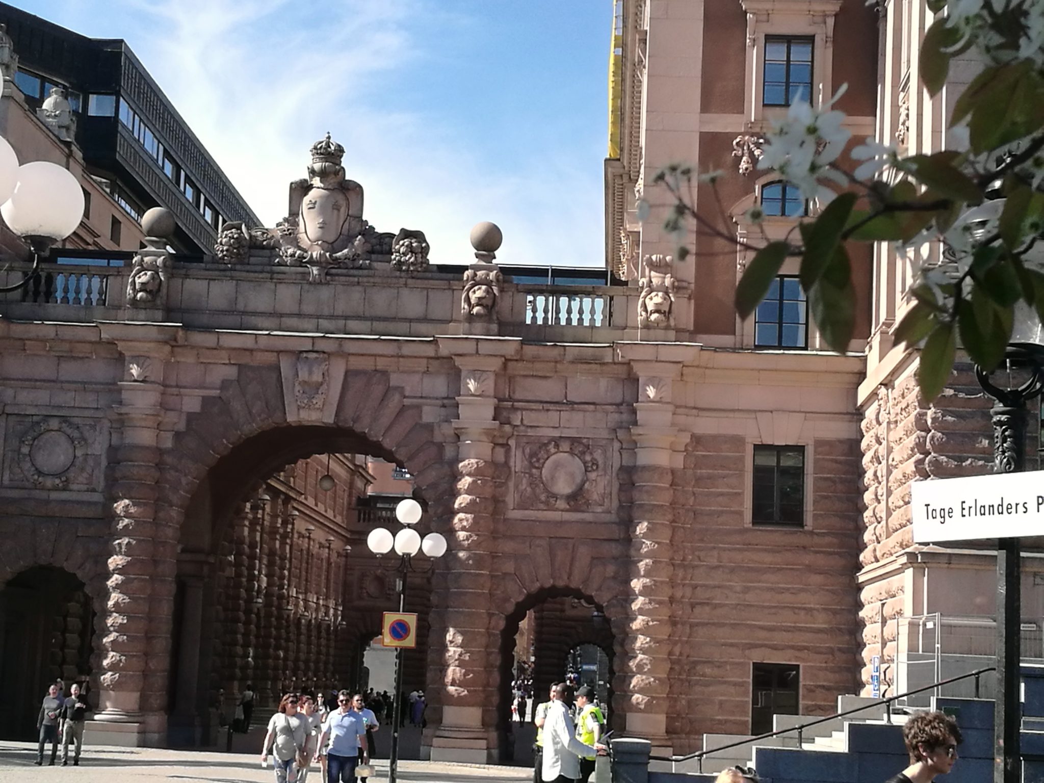 Pałac Królewski (Kungliga Slottet) pochodzący z XVII w. i wzniesiony na miejscu poprzedniego zamku Trzy Korony (Tre Kronor). Przed wejściem stoją żołnierze gwardii królewskiej, ale w czasie mojego pobytu nie udało mi się zobaczyć uroczystej zmiany warty. Ze względu na ograniczony czas zwiedziłam jedynie Kaplicę Królewską, która daje przedsmak tego, co czeka tych, którzy bez pośpiechu mogą sobie pozwolić na zwiedzenie całego kompleksu pałacowego.