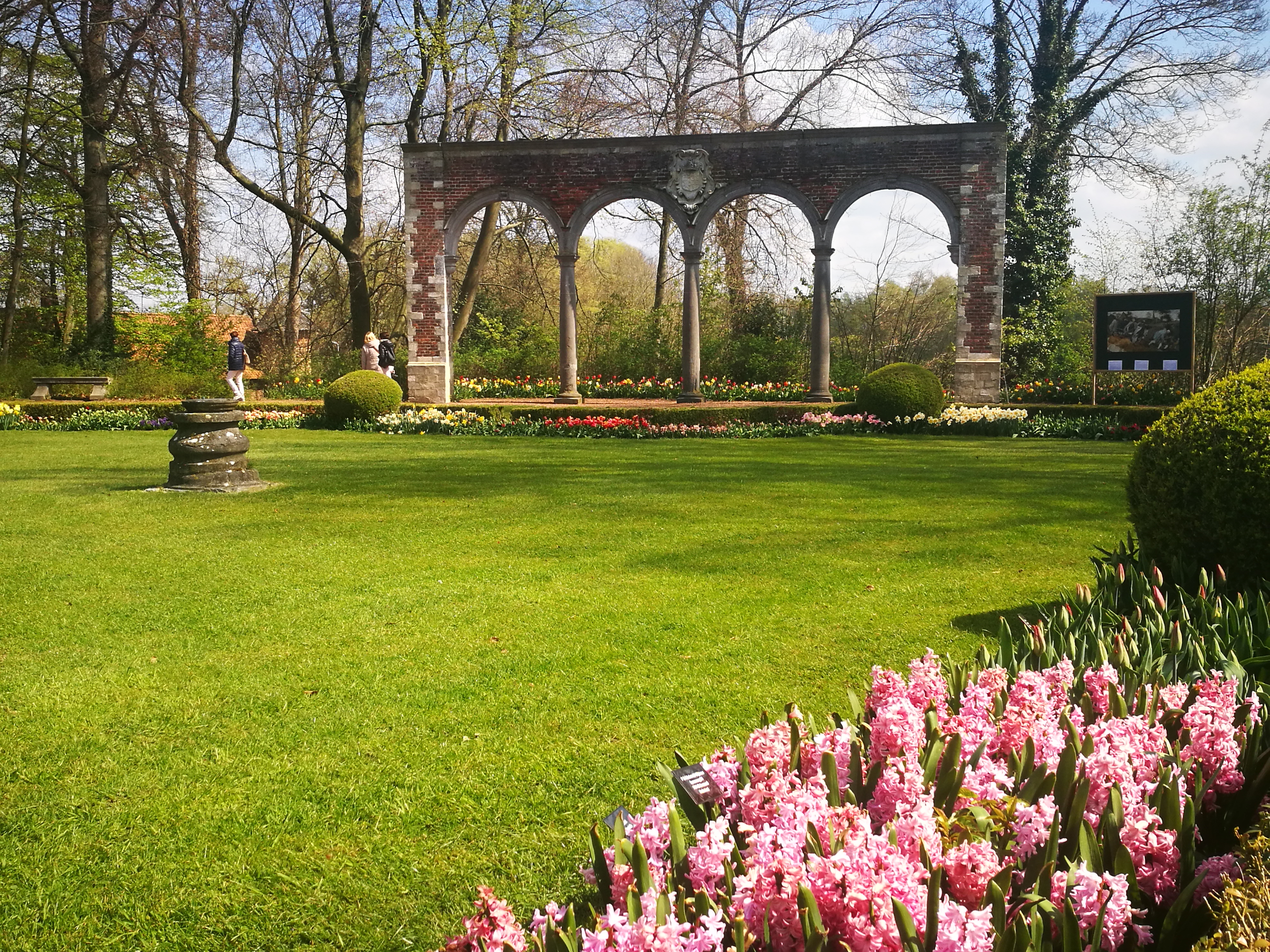 Zachwycający ogród został zaprojektowany dopiero na początku XX w. Jest obsadzony holenderskimi cebulkami od najlepszych producentów. Szczególną uwagę przykuwa imponujących rozmiarów kwiatowy paw: 6 m długości i 3 m szerokości. To ulubione miejsce do fotografowania. Będąc w parku, nie można też ominąć szklarni, w której co tydzień prezentowane są inne kompozycje z ciętych kwiatów. A dla nieco zmęczonych spacerem swoje podwoje otwiera kafejka oferująca różne smakołyki, które można degustować przy piknikowych stołach z widokiem na kolorowy ogród. Nie pozostaje więc nic innego, tylko planować wycieczkę do Groot-Bijgaarden…