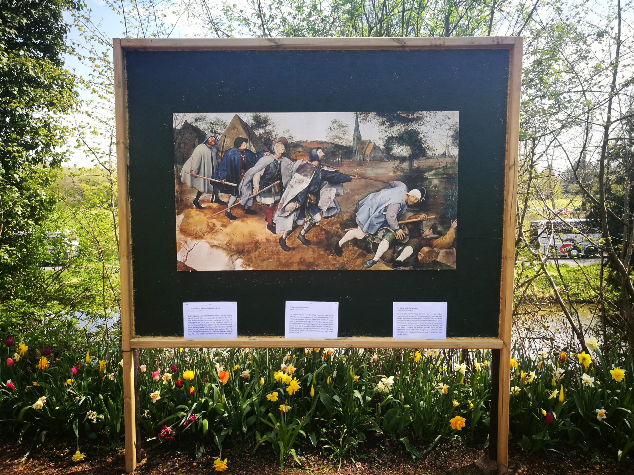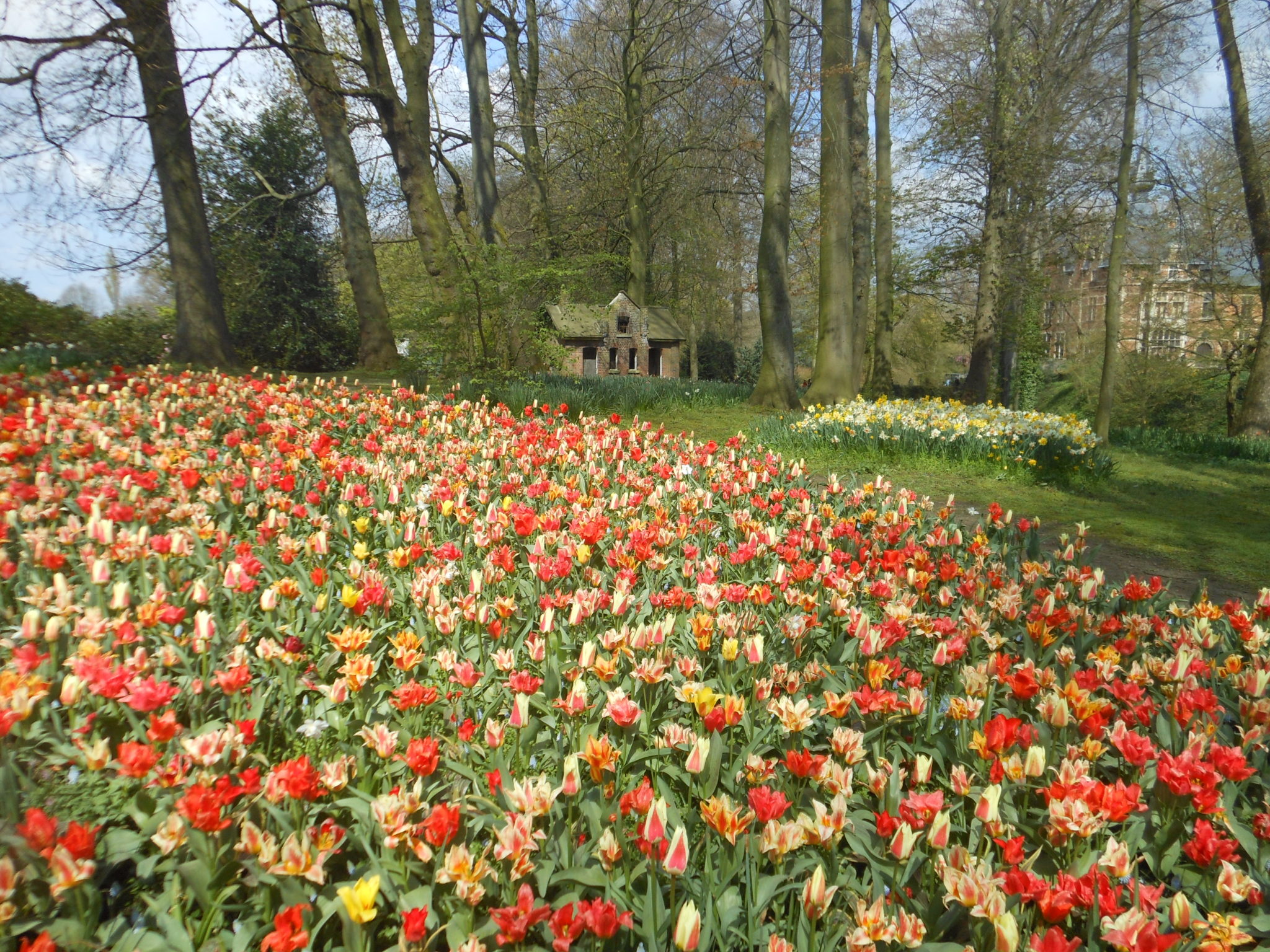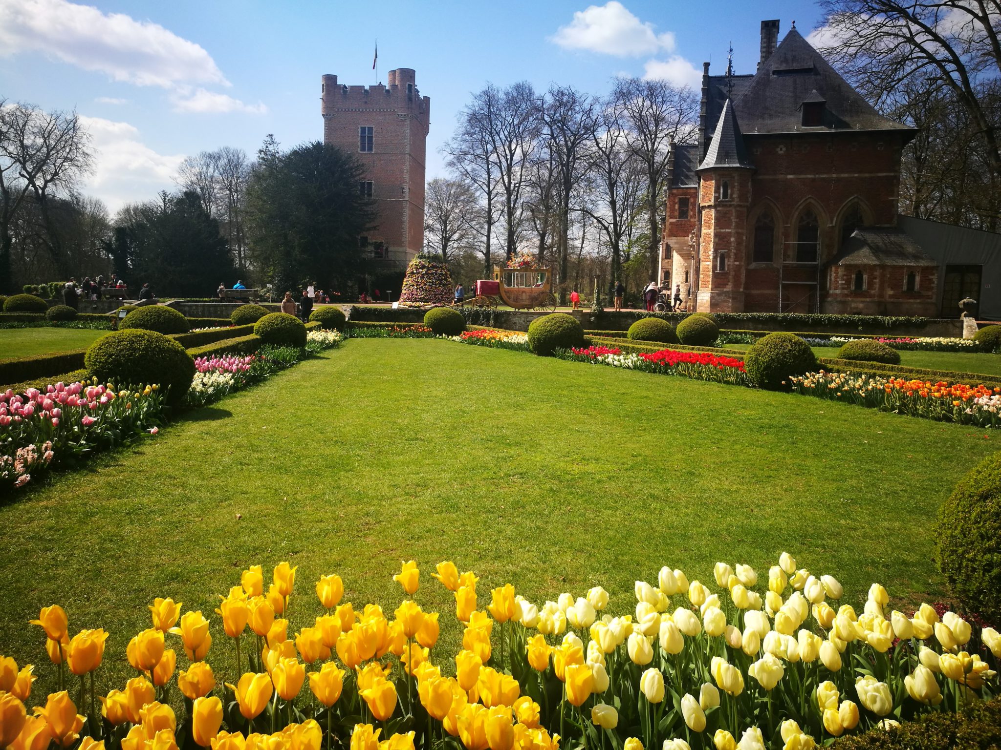 Wiosna to idealny czas na wyprawę do zamku Groot-Bijgaarden leżącego zaledwie 7 km od Brukseli. Właśnie od kwietnia do początku maja w rozległym ogrodzie otaczającym zamek odbywają się Floralia, czyli festiwal kwiatów (kliknij w zamieszczone tu zdjęcia, żeby zobaczyć je w powiększeniu). 14-hektarowy park – jak co roku – jest obsadzony ogromną ilością kwiatów cebulowych, wśród których wyróżnić można 400 gatunków tulipanów, hiacyntów i żonkili. Kwiatowy dywan zmienia się co tydzień w zależności od fazy kwitnienia roślin. Wiosenny ogród w Groot-Bijgaarden nasuwa skojarzenie z holenderskim Keukenhof, o czym pisałam tutaj, choć trzeba przyznać, że jego powierzchnia jest o połowę mniejsza. Rok 2019 jest wyjątkowy, ponieważ w Belgii jest hucznie obchodzona 450. rocznica śmierci flamandzkiego malarza, Pietera Breugla Starszego, który znaczną część życia spędził w Brukseli, gdzie zresztą zmarł. Z tej okazji w parku oraz odrestaurowanej szklarni można oglądać kopie dwudziestu najsłynniejszych obrazów Breugla.