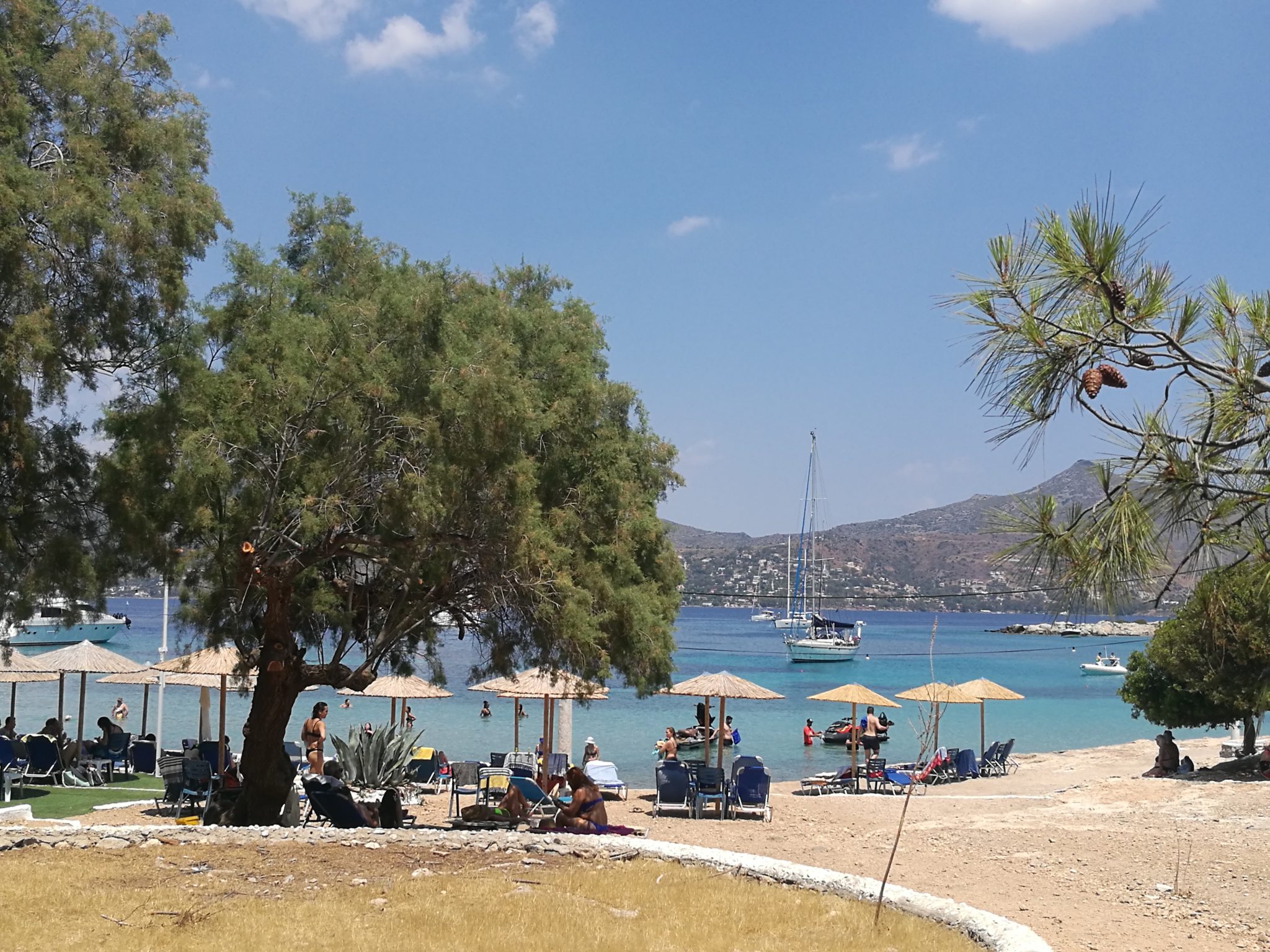 dyspozycji gości jest basen otoczony z jednej strony palmami, a z drugiej – drzewami oliwkowymi. Cień zapewniają trzy tarasy, na których można degustować lokalne przekąski. Z myślą o lubiących sport wybudowano kort tenisowy. Ci z kolei, którzy pragną popływać w morzu, powinni jedynie przejść przez ulicę i po stromych, kamiennych schodach zejść na wąską i kamienistą plażę. Ale szczerze mówiąc, najlepsza, piaszczysta plaża znajduje się w miasteczku Agia Marina, do którego można dojechać miejskim autobusem w ciągu 30 minut.