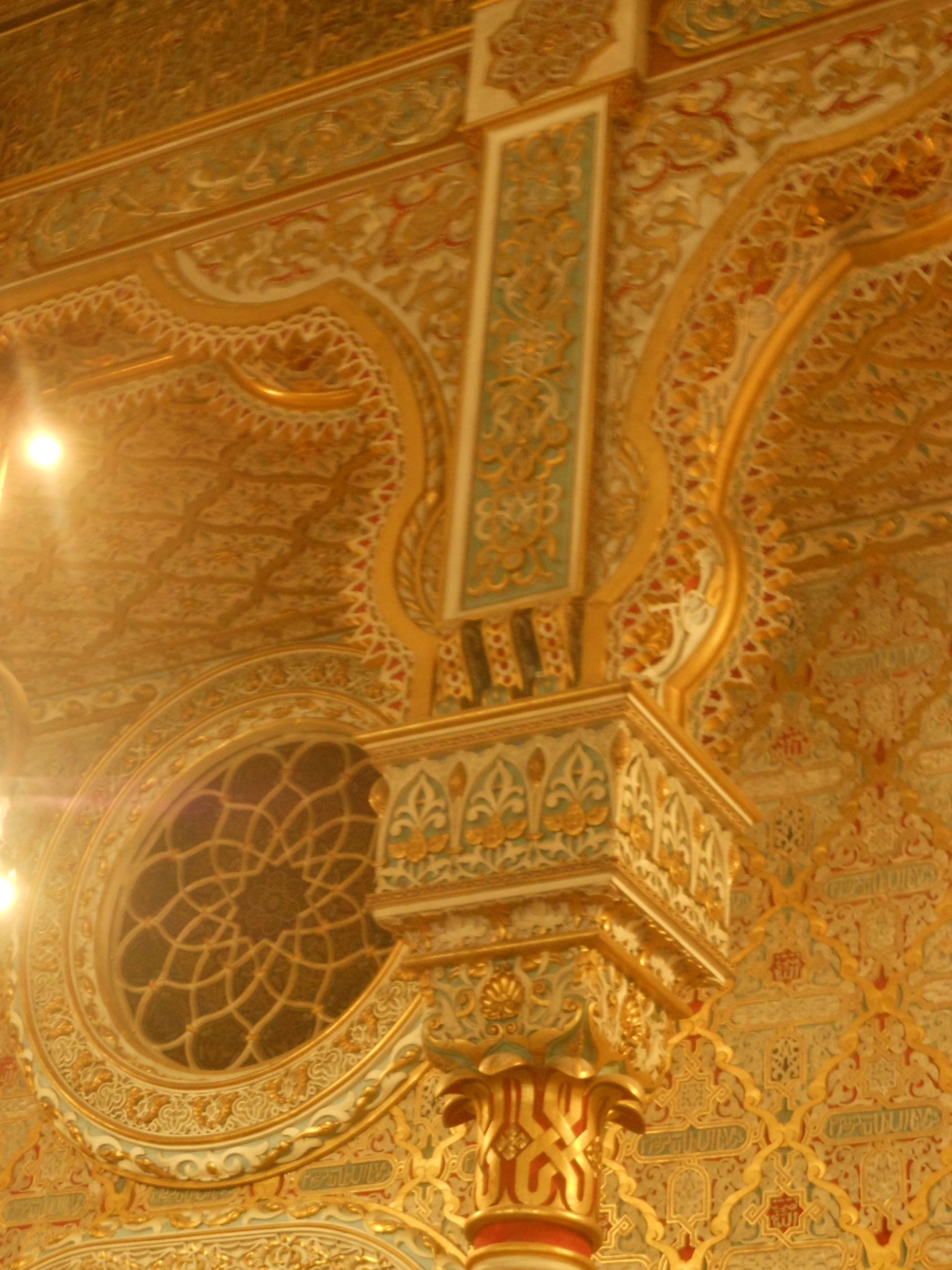 szklanymi panelami. Wchodząc po wielkich schodach, odwiedzający mogą oglądać kolejno Salę Trybunału, Salę Zgromadzenia, Salę Złotą i inne wnętrza pełne alegorycznych obrazów, rzeźb i fresków. Przysłowiową wisienką na torcie jest ostatnia sala – Sala Arabska zaprojektowana przez Gustavo Adolfo Gonçalves e Sousa. Pokój urządzony w stylu mauretańskim, zgodnie z XIX–wiecznym zachwytem orientalizmem, jest miejscem przyjęć ważnych osobistości odwiedzających Porto, co zresztą nie dziwi, ponieważ Palácio da Bolsa został wpisany na Listę Światowego Dziedzictwa UNESCO.