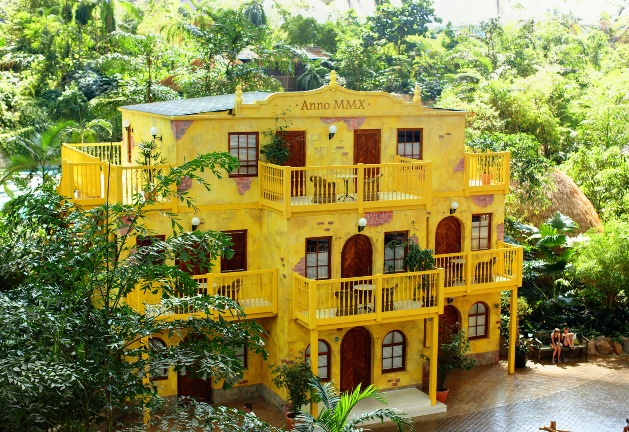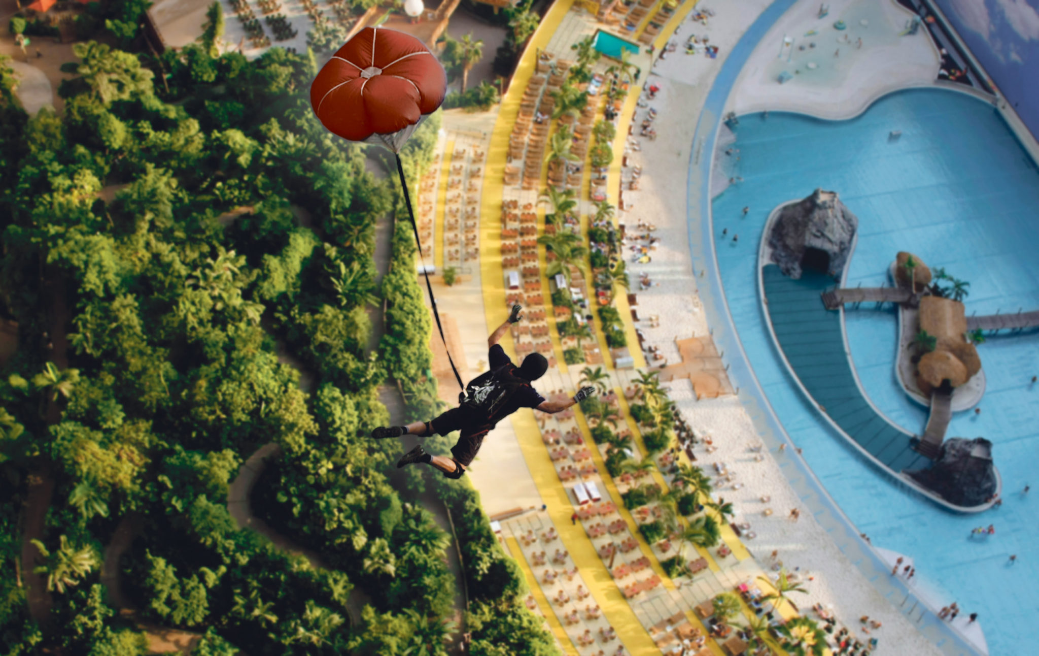 Po czwarte, zwolennicy mocnych wrażeń znajdą dla siebie również niepowtarzalne możliwości. Oto pod kopułą można odbyć lot balonem, który unosi się – w zależności od wybranej opcji – na wysokość 22 m lub 55 m. Dzięki temu można z góry podziwiać cały tropikalny kompleks i zrobić unikatowe zdjęcia. Komu to nie wystarcza, może skorzystać z „African Jungle Lift”, czyli rodzaju windy, która zapewni pasażerom niezpomniane wrażenia. Chętni siadają na ławce, która przypomina wydrążony pień drzewa. Pień podjeżdża do góry na wysokość 20 m, zatrzymuje się na chwilę, po czym gwałtownie spada na dół. Jeśli nadal dysponujemy wystarczającą energią, możemy się udać na najwyższą w Niemczech wodną zjeżdżalnię. Tam mamy do wyboru cztery ślizgawki o różnym stopniu trudności. Na najszybszej z nich można rozwinąć prędkość nawet 70 km na godzinę. Na innej można zjeżdżać na specjalnych oponach.
