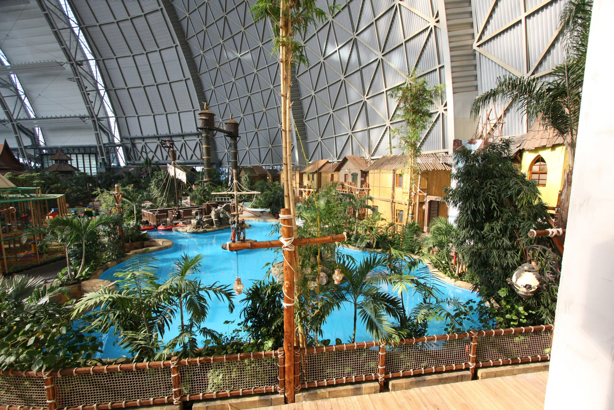 Po drugie, Tropical Islands ma imponujące rozmiary. Otóż hala o długości 360 m, szerokości 210 m i wysokości 107 m jest tak wielka, że nowojorska Statua Wolności mogłaby się w niej zmieścić na stojąco. A to ni mniej ni więcej oznacza, iż powierzchnia Tropical Islands odpowiada ośmiu boiskom do piłki nożnej.