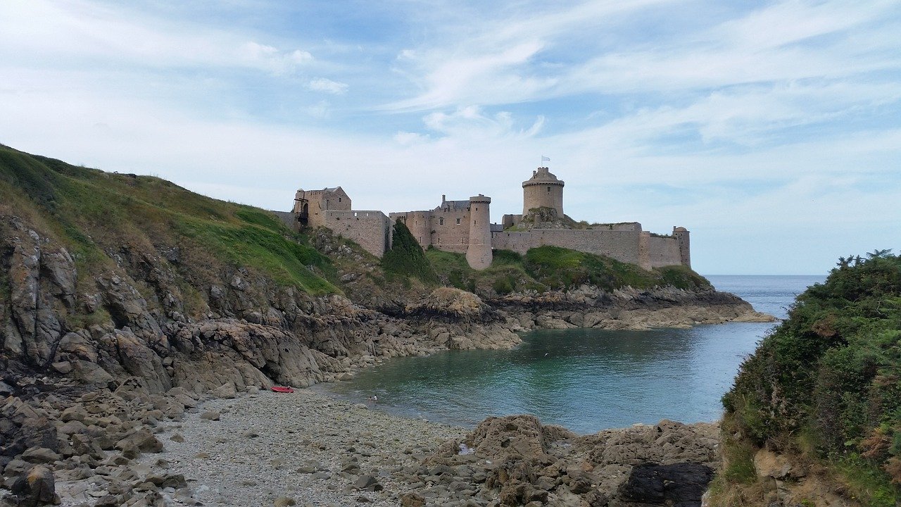 Ten jeden z najpiękniejszych XIV-wiecznych zamków obronnych w Bretanii leży w Zatoce Saint-Malo na cyplu La Latte. Zbudowany na 72 m skale obiekt należał w przeszłości do jednej z najstarszych bretońskich rodzin Goyon-Matignon. Zamek został wybudowany w okresie wojny o sukcesję w Bretanii i służył do obrony pobliskiego miasta Saint-Malo przed atakami ze strony Anglików.