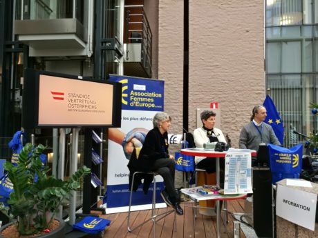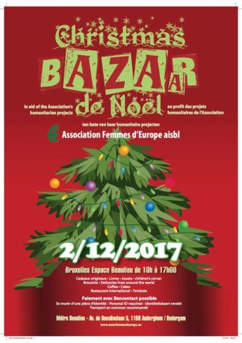 Association Femmes d’Europe pozyskuje fundusze, organizując wydarzenia kulturalne i kiermasze (bożonarodzeniowy i wielkanocny) w pięknych, nowoczesnych budynkach UE w Brukseli. Uzyskane w ten sposób środki finansowe są w całości przeznaczone na realizację projektów charytatywnych, których beneficjantami są niezależne organizacje pozarządowe pracujące z ludźmi znajdującymi się w najtrudniejszych sytuacjach życiowych, ze szczególnym uwzględnieniem kobiet i dzieci.